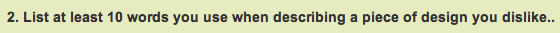 The above link is for the Macmillan dictionary website where there is a page of words specifically to describe art. This is a strong list of words and although not all are releven to graphic design it is a good start to generate words.